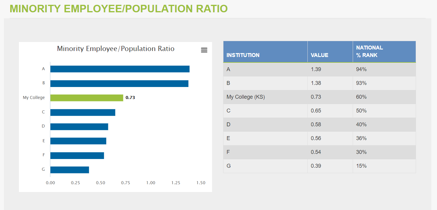 Customize your report to your audience. In a custom report, you can tailor the benchmarks and analysis to evaluate your institution's performance—and communicate these clearly and quickly to your president and other stakeholders.
