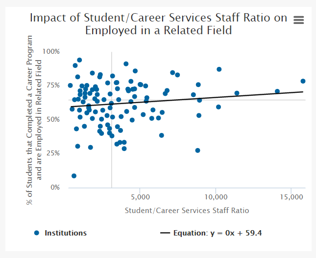 Members can use bar charts of national results, trend charts, scatter plots and include text boxes to give insight into the data. Additionally, universities and colleges can add peer groups to the charts to illustrate the difference between looking at the national database and looking at their peers.